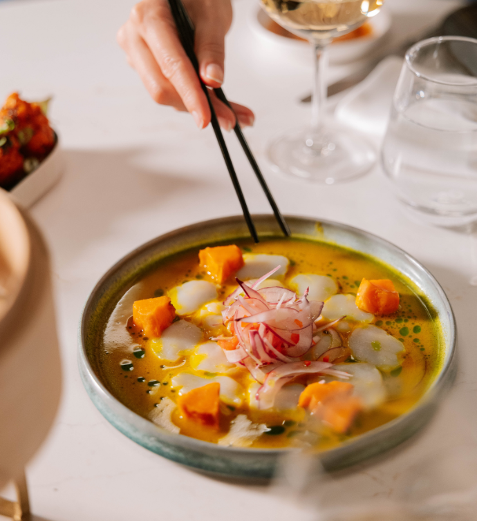 Mr. Nakamoto’s menu showcases fresh, local ingredients and seafood, featuring a selection of signature sushi alongside classic dishes enlivened by a blend of Thai, Korean, Vietnamese and Japanese flavours.