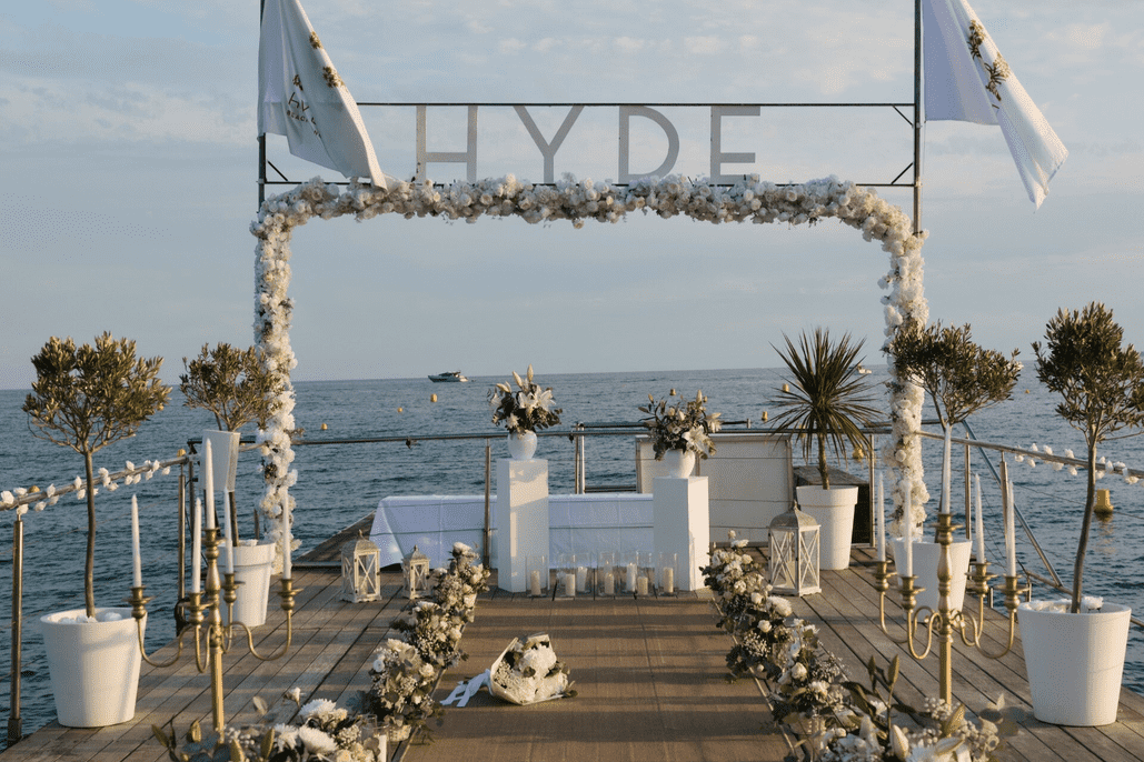 The magic of the Riviera becomes the backdrop to your love story at Hyde Beach Cannes. Under the soft glow of the sunset, our private pier on the Croisette offers a unique setting for an unforgettable proposal.