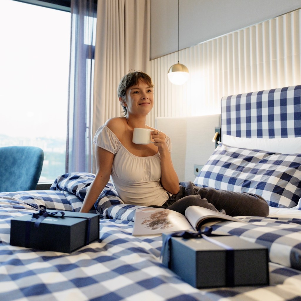 Experience the perfect sleepcation in our Hästens x Mondrian Suite with Hästens’ iconic blue-check bed, linens, and amenities for your perfect rest.