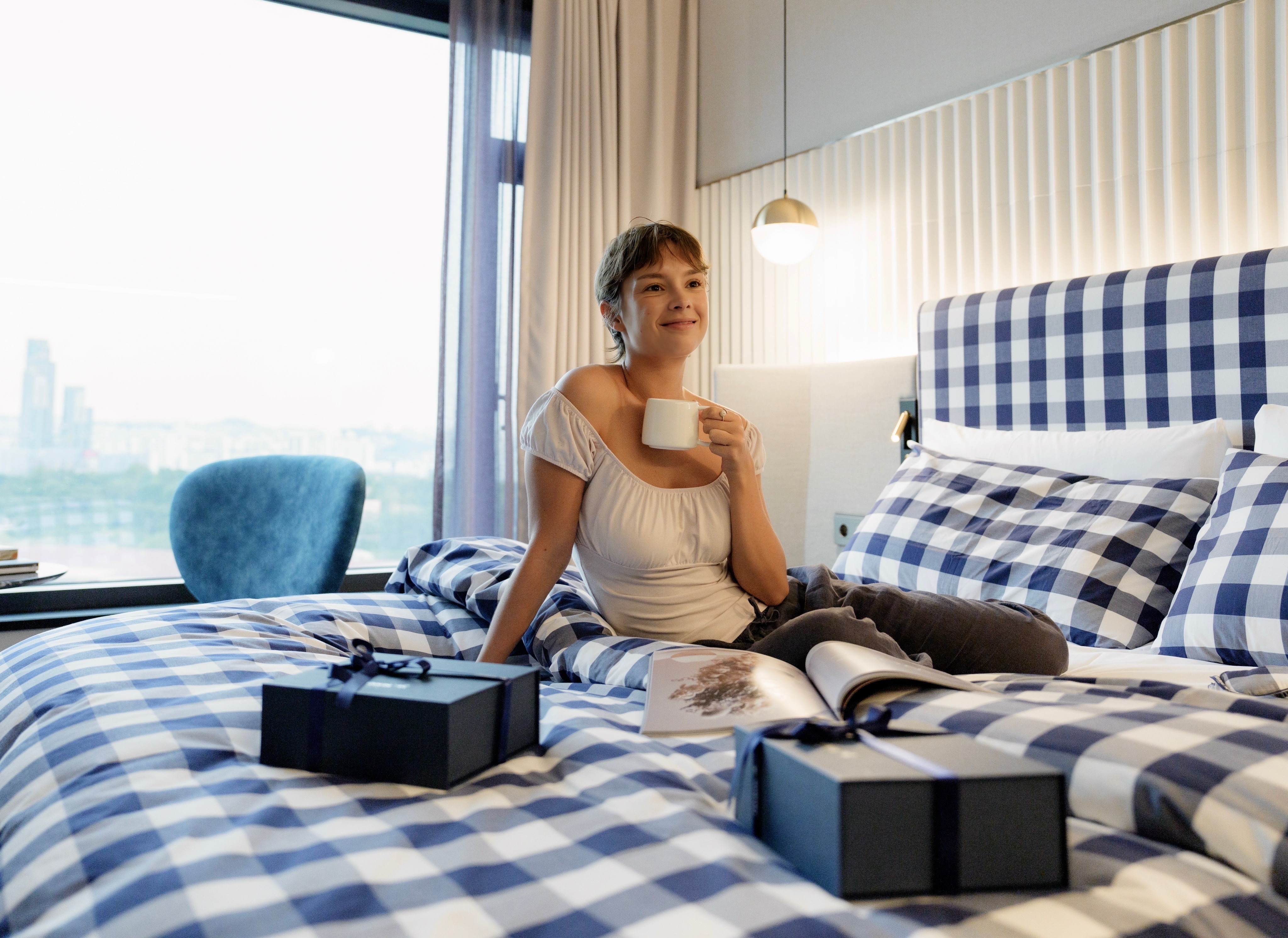 Experience the perfect sleepcation in our Hästens x Mondrian Suite with Hästens’ iconic blue-check bed, linens, and amenities for your perfect rest.